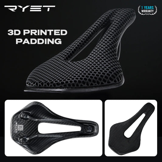 RYET 3D Printed Bicycle Saddle Ultralight Carbon Fiber Hollow Comfortable Breathable MTB Gravel Road bike Cycling Seat Parts